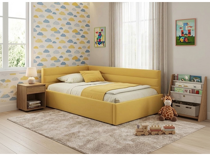 Кровать Aura велюр желтый с подъемным механизмом 900x2000, ортопедическое основание, изголовье мягкое