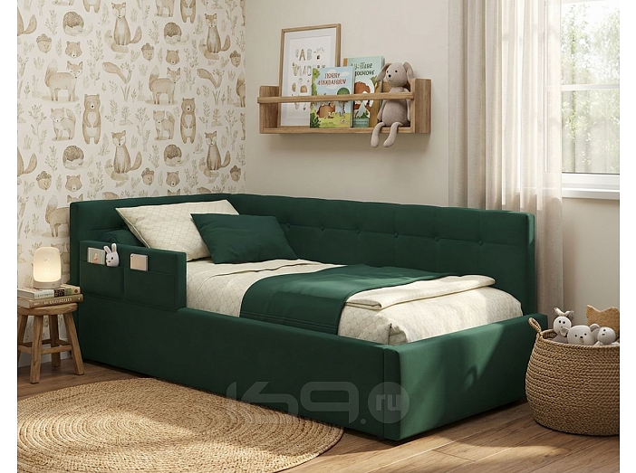 Интерьерная кровать-тахта Milena (Милена) 90х200 с бортиком оборудована удобным подъемным механизмом.