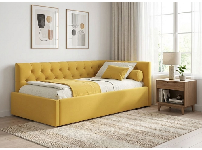 Кровать Afelia велюр желтый без подъёмного механизма 900x2000, изголовье мягкое