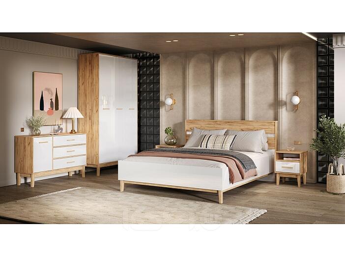 Кровать Кельн без обивки белый глянец/дуб крафт без П/М 1400x2000, без ортопедического основания, изголовье жесткое