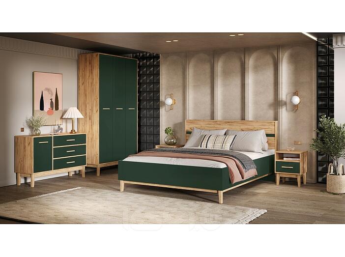 Кровать Кельн без обивки изумрудный/дуб крафт без П/М 1400x2000, без ортопедического основания, изголовье жесткое