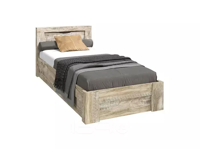 Кровать Ривьера без обивки дуб юкон/бетон темный без подъёмного механизма 900x2000, без ортопедического основания, изголовье жесткое