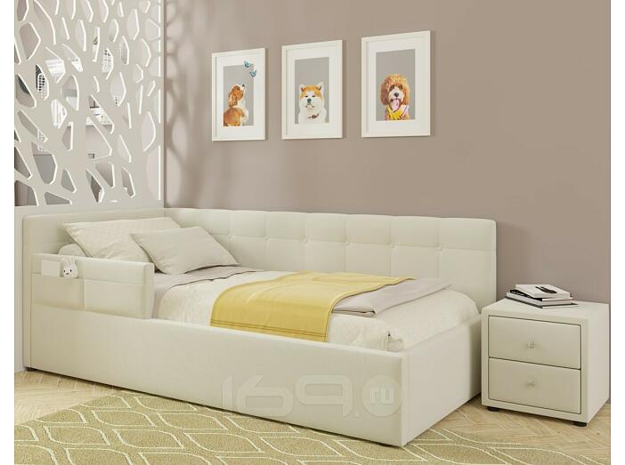 Кровать Bonna велюр бежевый с подъемным механизмом 900x2000, ортопедическое основание, изголовье мягкое