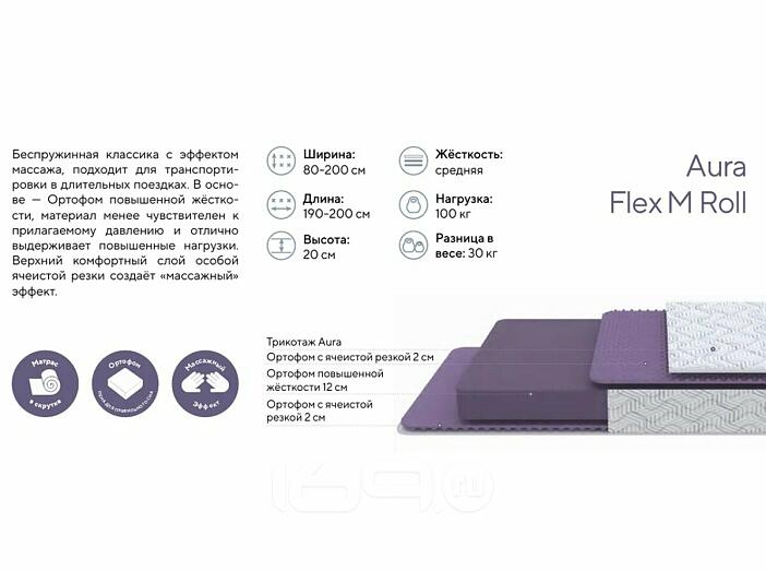 Матрас беспружинный Aura Flex M Roll нагрузка до 100 кг 1400x2000