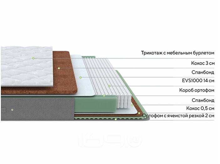 Матрас пружинный Dream трикотаж нагрузка до 140 кг, evs1000 14см, кокос, короб ортофом (ппу), ортофом (ппу), спанбонд