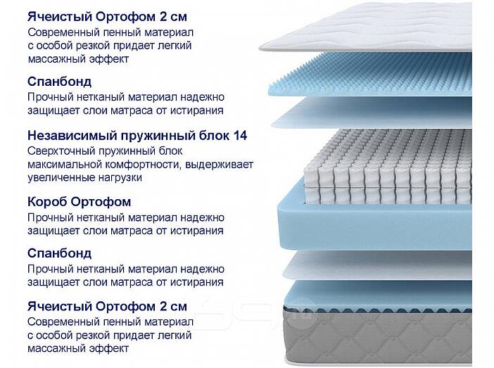 Матрас пружинный Online трикотаж нагрузка до 130 кг, evs620 14см+рамка, короб ортофом, ортофом ячеистый, спанбонд
