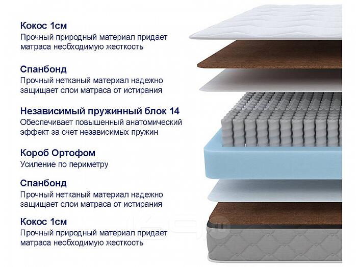 Матрас пружинный Online трикотаж нагрузка до 115 кг, evs500 pro, кокос, короб ортофом, спанбонд