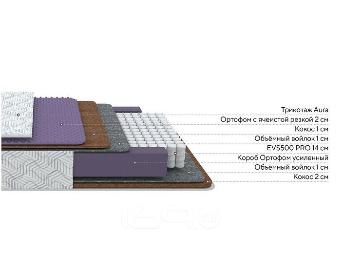 Состав:Объёмный войлок, Короб усиленный (ВППУ), Кокос 2 см, Кокос 1 см, Ортофом (ППУ) 2 см ячеистый, ПБ 500 PRO 14 см