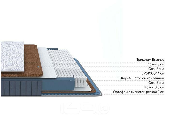 Состав:Короб усиленный (ВППУ), Кокос 3 см, Кокос 0,5 см, EVS1000 14 см, Ортофом (ППУ) с ячеистой резкой 2 см, Спанбонд