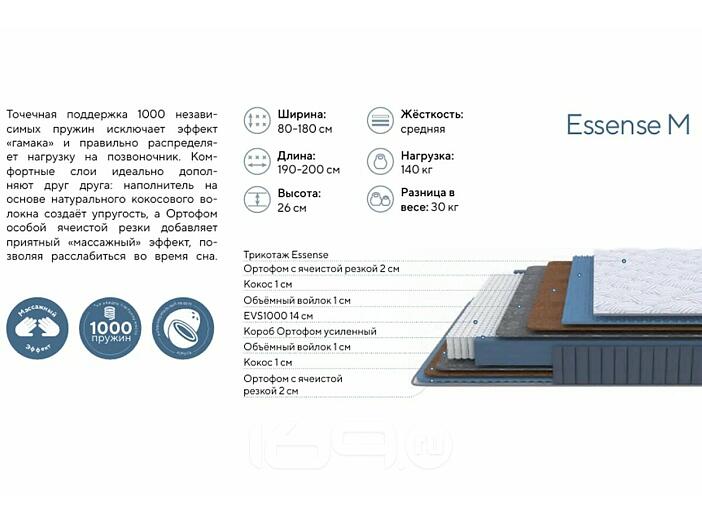 Матрас пружинный Essense M нагрузка до 140 кг 1600x2000
