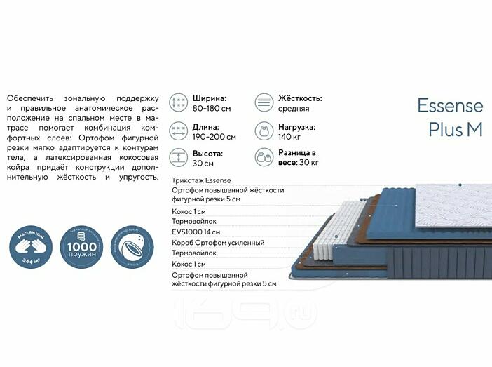 Матрас пружинный Essense Plus M нагрузка до 140 кг 1400x2000