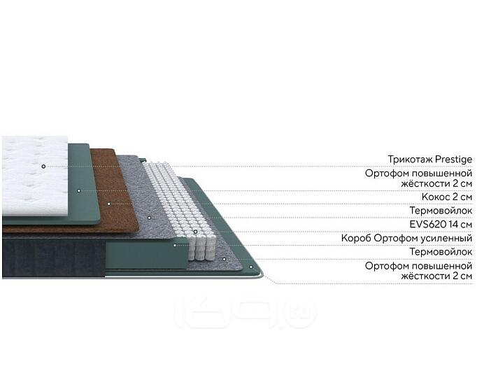 Состав:EVS620 14 см, Кокос 2 см, Короб усиленный (ВППУ), Ортофом (ППУ) повышенной жесткости 2 см, Термовойлок