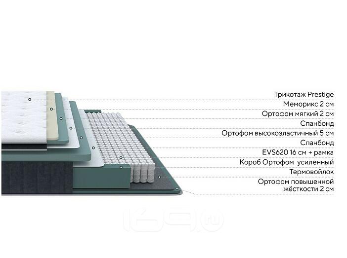 Состав:Термовойлок, Спанбонд, рамка к ПБ, Ортофом (ППУ) повышенной жесткости 2 см, Ортофом (ППУ) мягкий 2 см, Ортофом (ППУ) высокоэластичный 5 см, Меморикс 2 см (Ортофом (ППУ) с эффектом памяти), EVS620 16см, Короб усиленный (ВППУ)