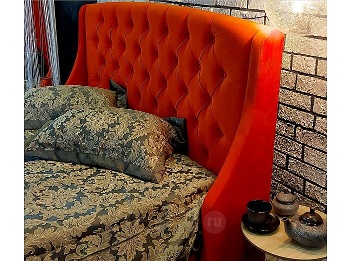 Кровать Stefani велюр морковный 180x200 см, мягкое изголовье