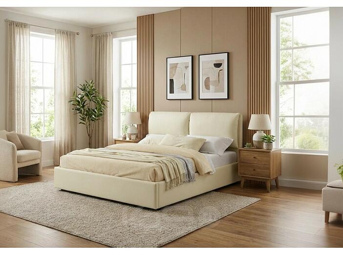 Кровать Vita велюр бежевый с подъемным механизмом 1800x2000, ортопедическое основание, изголовье мягкое