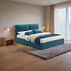 Кровать Vita велюр синий 180x200 см, мягкое изголовье
