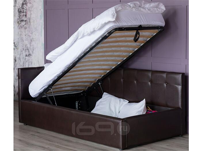 Интерьерная кровать-тахта оборудована удобным подъемным механизмом. Подъемный механизм с гнутоклееными ортопедическими основаниями поднимает кровать под углом 45 градусов. Безопасное противоударное скругление в ножной спинке является весьма актуальным и взрослым и детям. Кровать тахта с подъемным механизмом создает дополнительное место для хранения постельного белья и вещей не первой необходимости, экономит пространство в спальне. 10 летняя гарантия на металлическую рамку. Газлифты повышенной мощности позволяют поднимать и опускать ортопедическую рамку с матрасом без всяких усилий. Передняя часть кровати тахты с подъемным механизмом предназначена для хранения постельных принадлежностей. Данное пространство закрывается противопыльным матерчатым коробом из плотного спанбонда. Матерчатый короб фиксируется в подматрасном пространстве с помощью системы ленты-липучки "HOOK&LOОP". Задняя стенка изголовья обшита спандбондом.