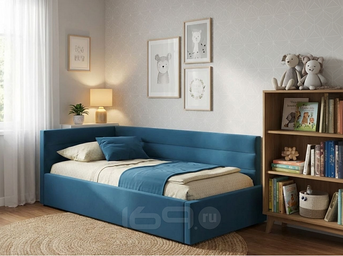 Кровать Aura велюр синий с подъемным механизмом 1200x2000, ортопедическое основание, изголовье мягкое
