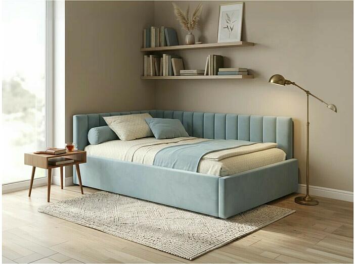 Мягкая кровать-тахта Milena (Милена) c ортопедическим основанием и спальным местом 120*200 – уникальный предмет мебели, который совмещает в себе полноценную кровать и диван. Тахта с двумя мягкими спинками выполнена из модной мебельной ткани – велюр. Ткань износостойкая, легко чистится от загрязнений (влажной тряпочкой, любыми средствами, кроме средств с растворителями), практичная, эластичная, устойчивая к ультрафиолету.