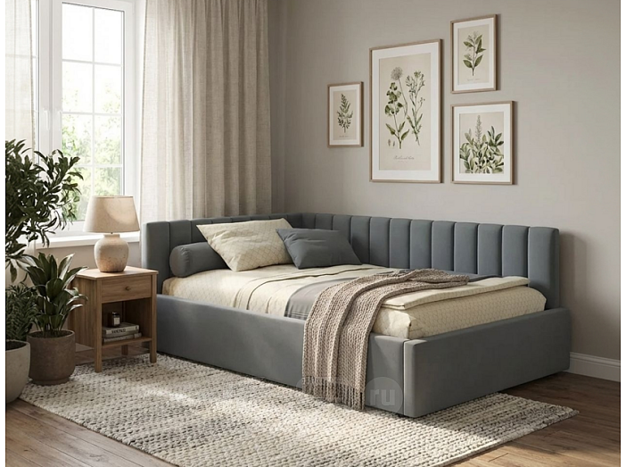 Кровать Milena велюр серый без подъёмного механизма 1200x2000, изголовье мягкое