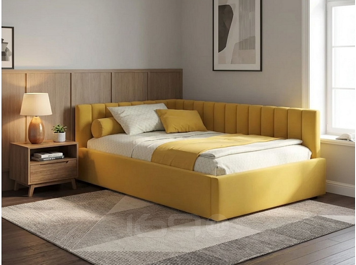 Кровать Milena велюр желтый без подъёмного механизма 1200x2000, изголовье мягкое