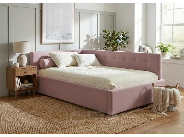 Мягкая кровать-тахта Bonna (Бонна) c подъемным ортопедическим основанием и спальным местом 120*200 – уникальный предмет мебели, который совмещает в себе полноценную кровать и диван. Тахта с двумя мягкими спинками выполнена из модной мебельной ткани – велюр. Ткань износостойкая, легко чистится от загрязнений (влажной тряпочкой, любыми средствами, кроме средств с растворителями), практичная, эластичная, устойчивая к ультрафиолету.