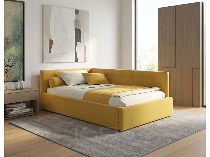 Кровать Bonna велюр желтый с подъемным механизмом 1200x2000, ортопедическое основание, изголовье мягкое