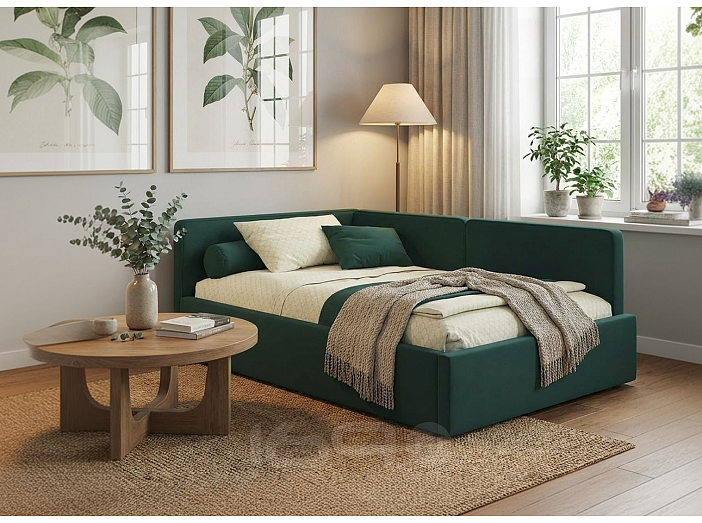 Мягкая дизайнерская кровать-тахта KAPRI со спальным местом 120х200 станет центром притяжения вашей изысканной спальни, детской или подростковой комнаты. Пышное мягкое изголовье с тремя спинками и декоративным итальянским кантом – выбор истинных ценителей стиля и комфорта._x000D_