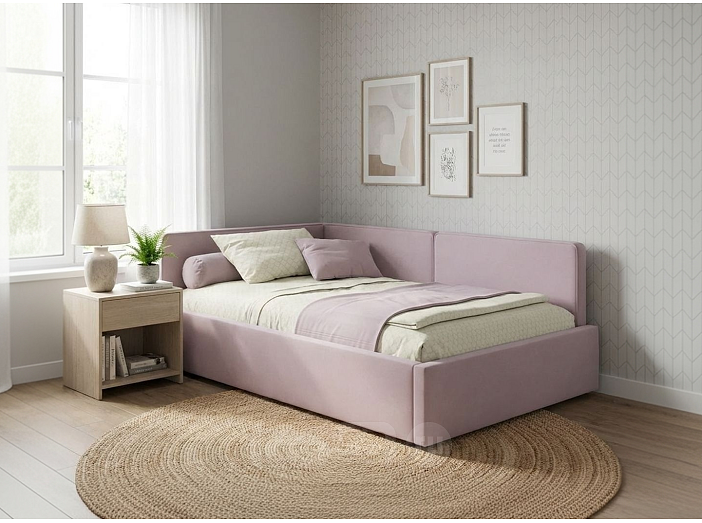 Мягкая дизайнерская кровать-тахта KAPRI со спальным местом 120х200 станет центром притяжения вашей изысканной спальни, детской или подростковой комнаты. Пышное мягкое изголовье с тремя спинками и декоративным итальянским кантом – выбор истинных ценителей стиля и комфорта._x000D_