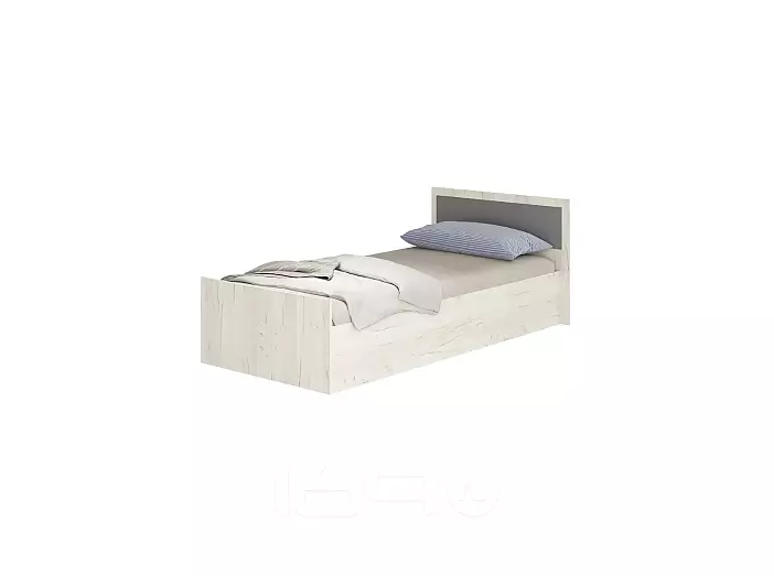 Кровать Фиеста с матрасом без обивки графит/дуб крафт белый без П/М 900x2000, без ортопедического основания, изголовье жесткое