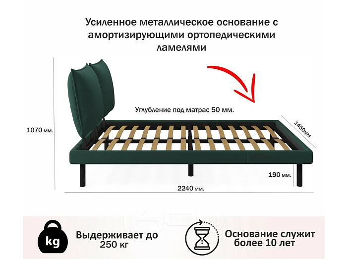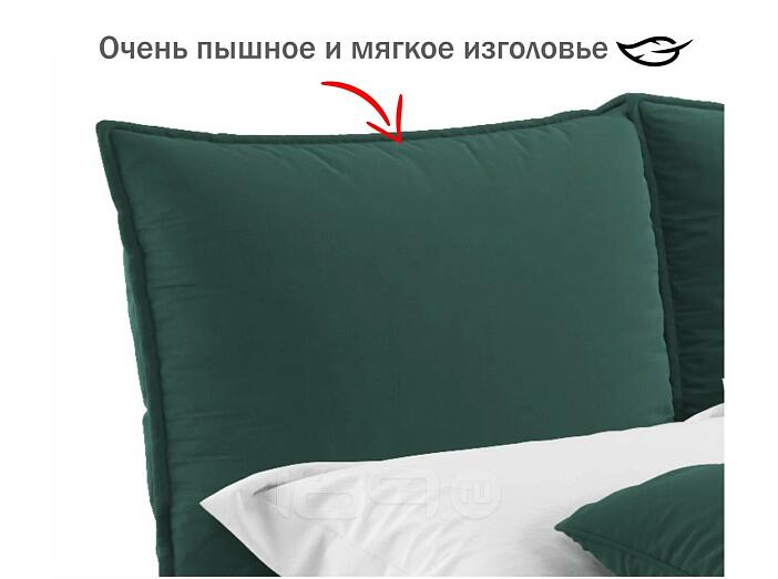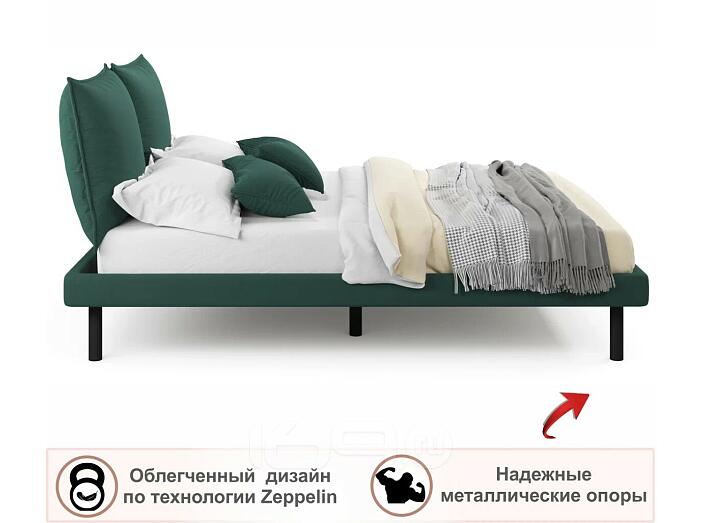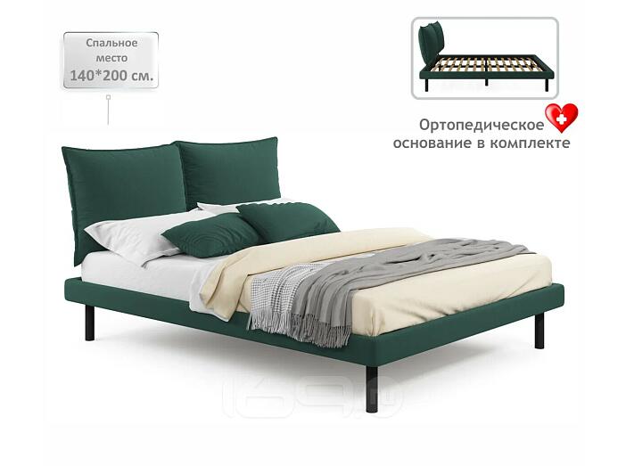 Кровать Fly с матрасом велюр изумруд без П/М 1400x2000, изголовье мягкое