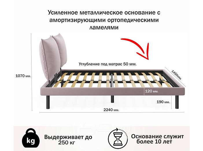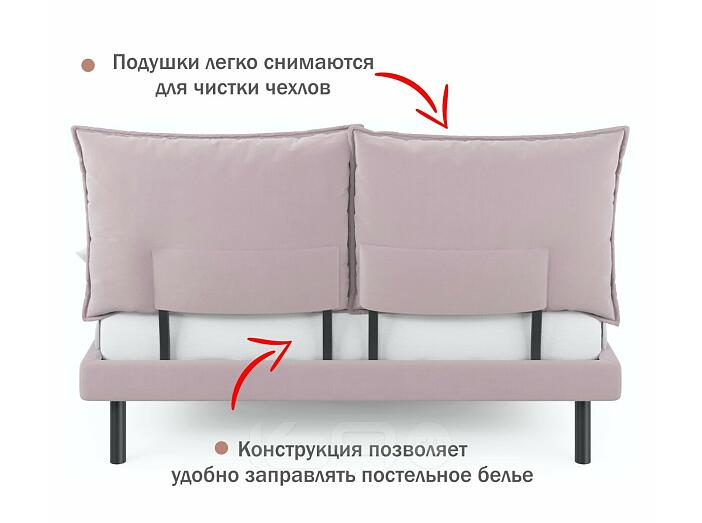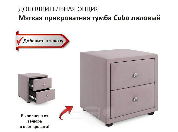 Кровать Fly с матрасом велюр лиловый без П/М 1400x2000, изголовье мягкое