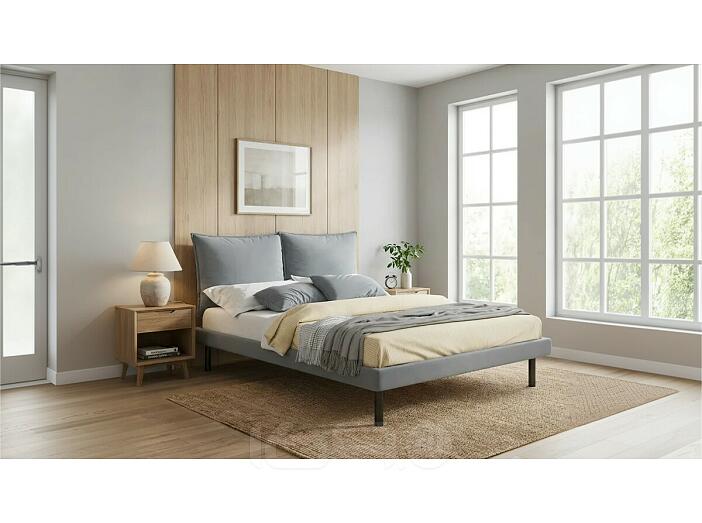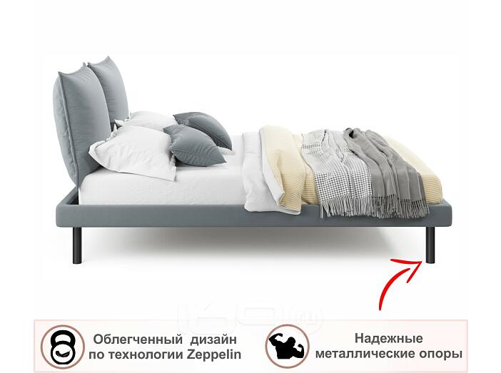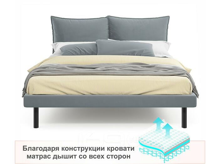 Кровать Fly с матрасом велюр серый без П/М 1400x2000, изголовье мягкое