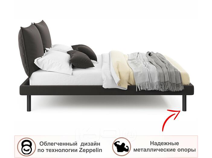 Кровать Fly с матрасом велюр шоколад без П/М 1400x2000, изголовье мягкое