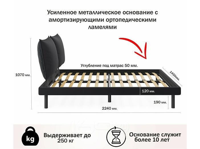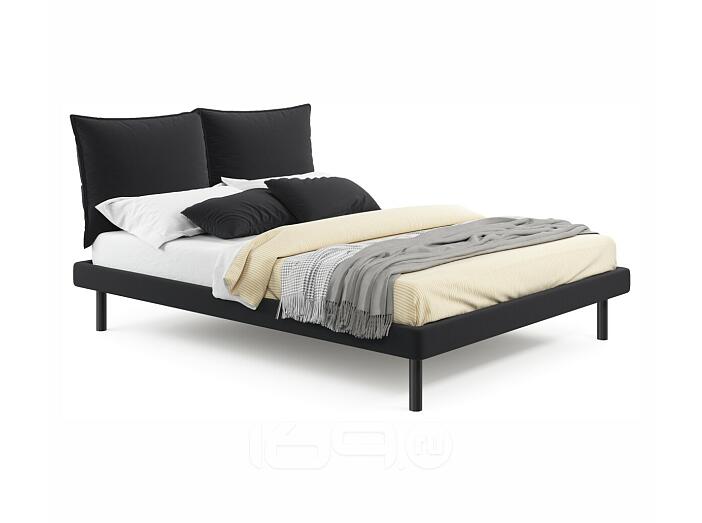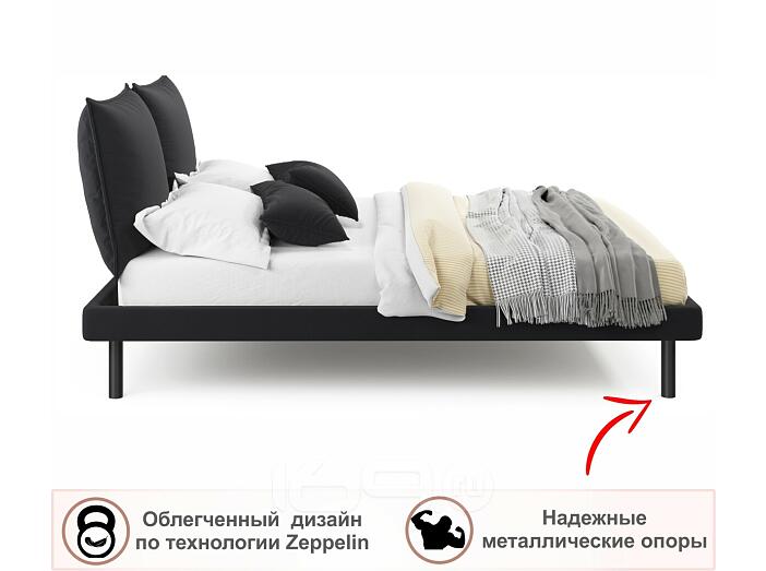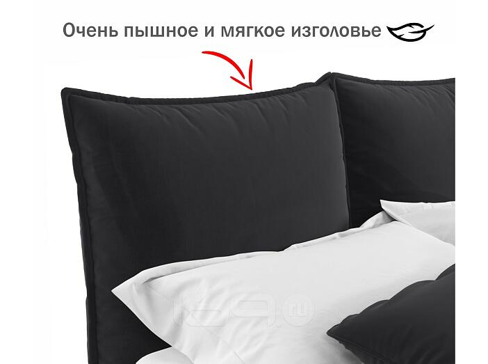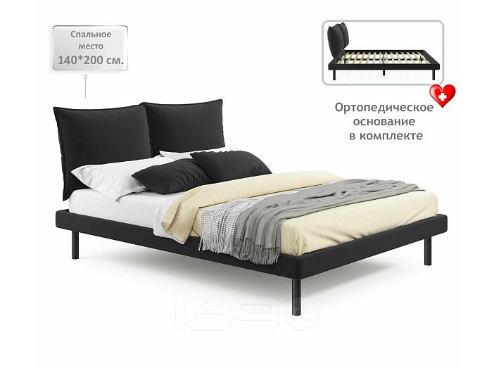 Кровать Fly с матрасом велюр черный без П/М 1400x2000, изголовье мягкое