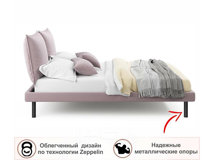 Кровать Fly с матрасом велюр лиловый без П/М 1600x2000, изголовье мягкое