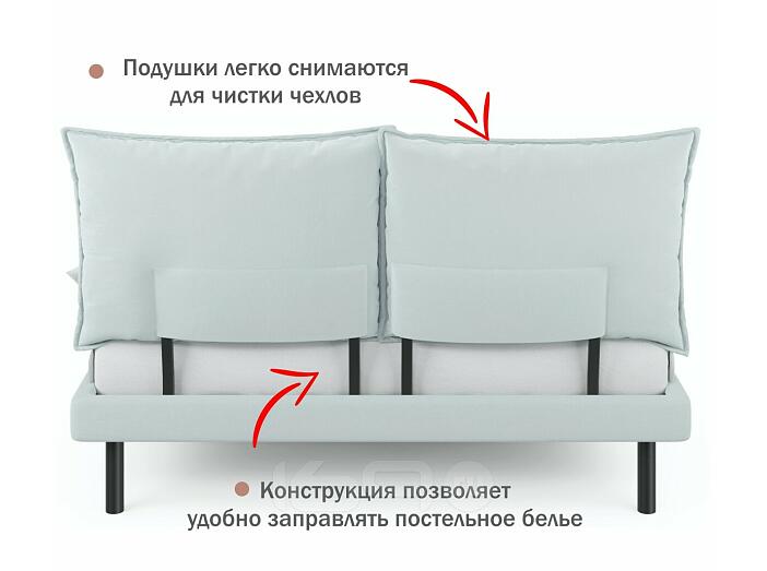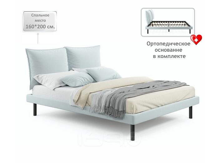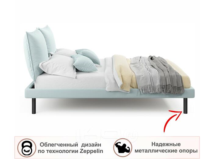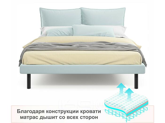 Кровать Fly с матрасом велюр мята пастель без П/М 1600x2000, изголовье мягкое