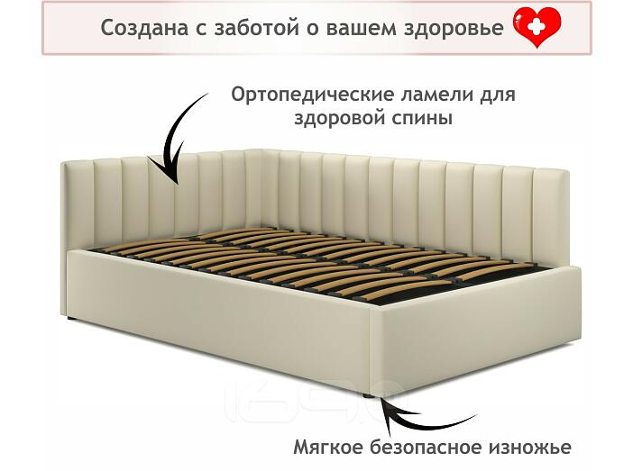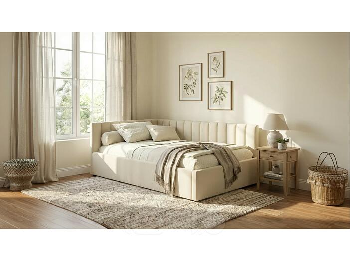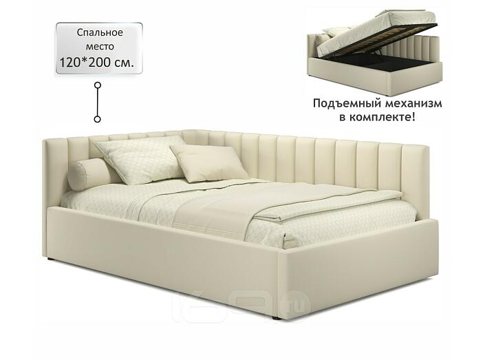 Кровать Milena с матрасом велюр бежевый С П/М 1200x2000, ортопедическое основание, изголовье мягкое