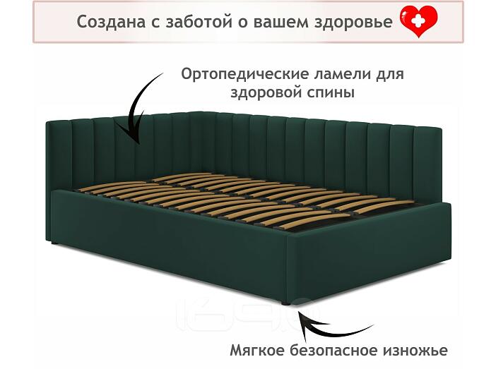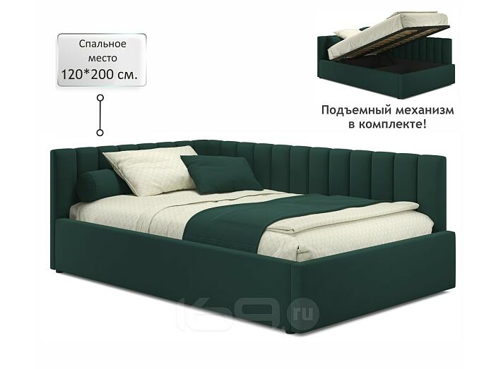 Кровать Milena с матрасом велюр изумруд С П/М 1200x2000, ортопедическое основание, изголовье мягкое