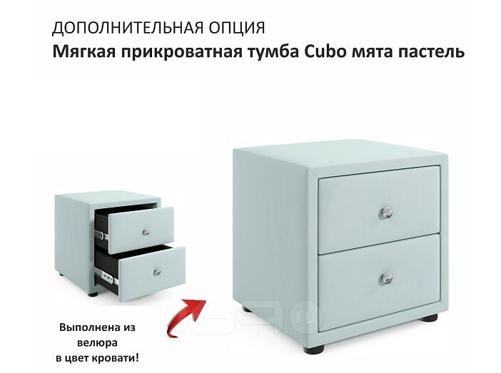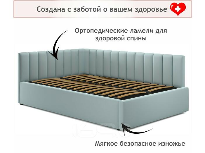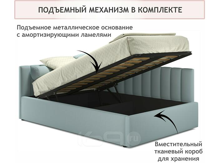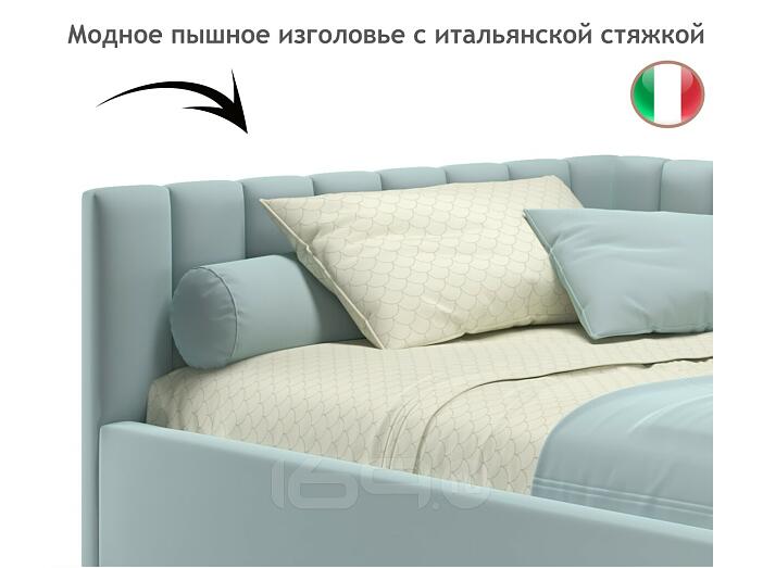 Кровать Milena с матрасом велюр мята пастель С П/М 1200x2000, ортопедическое основание, изголовье мягкое