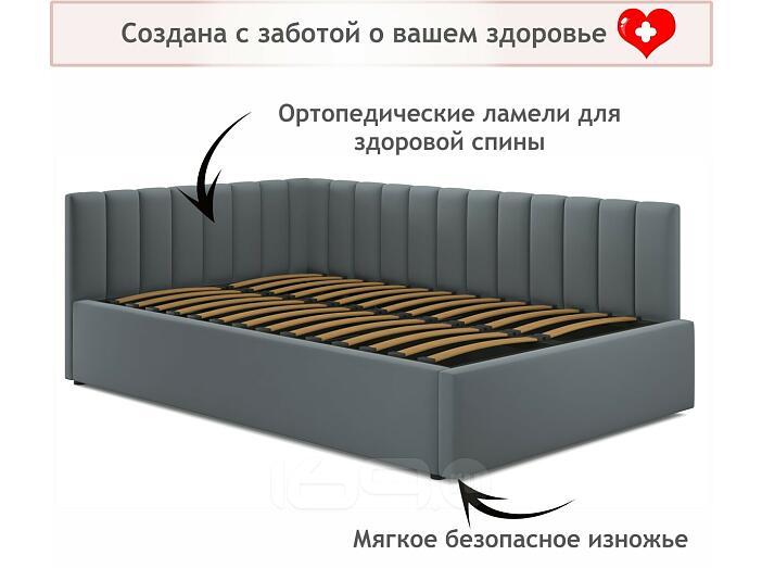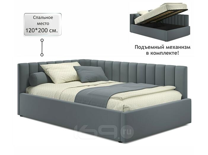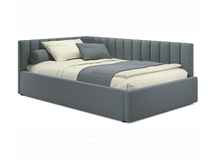 Кровать Milena с матрасом велюр серая С П/М 1200x2000, ортопедическое основание, изголовье мягкое