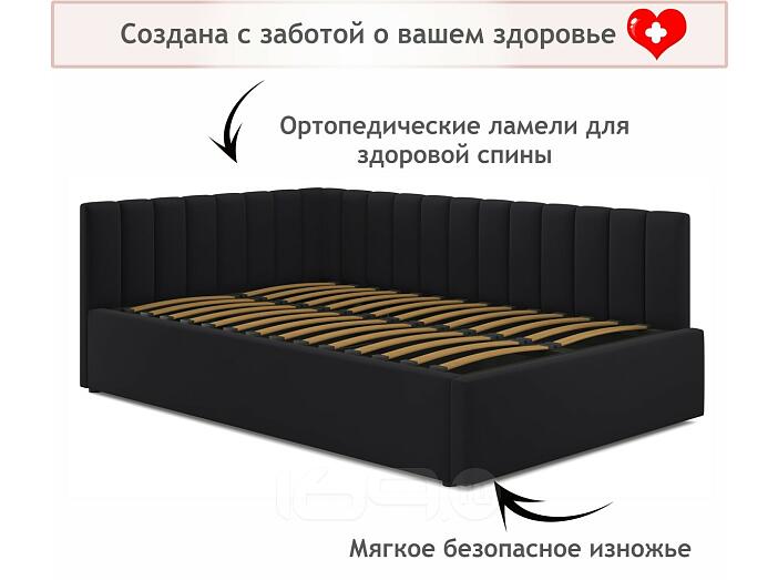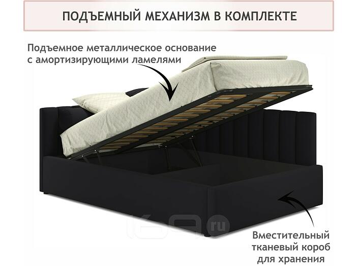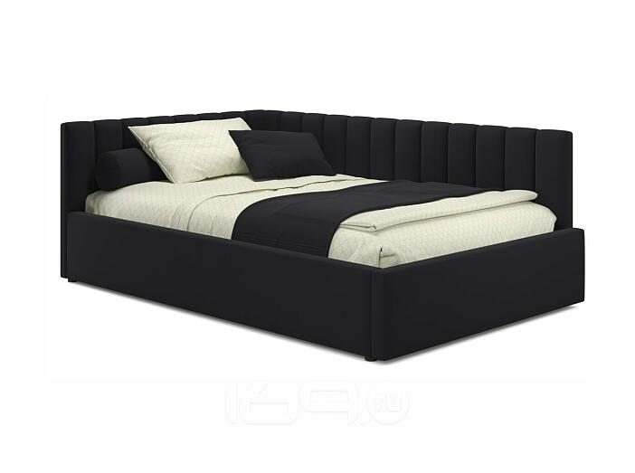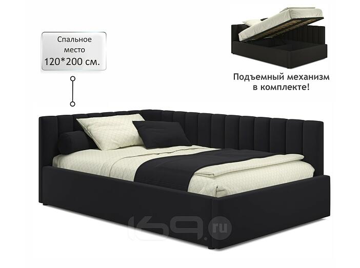 Кровать Milena с матрасом велюр черный С П/М 1200x2000, ортопедическое основание, изголовье мягкое