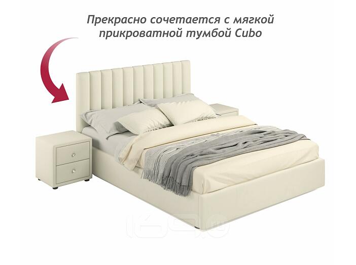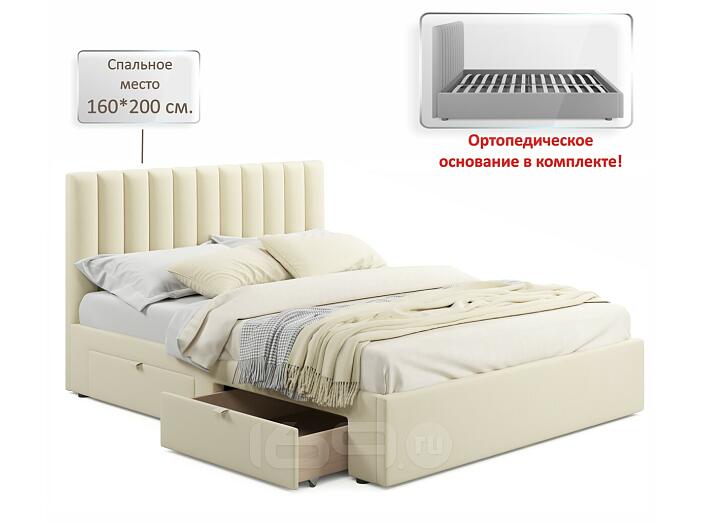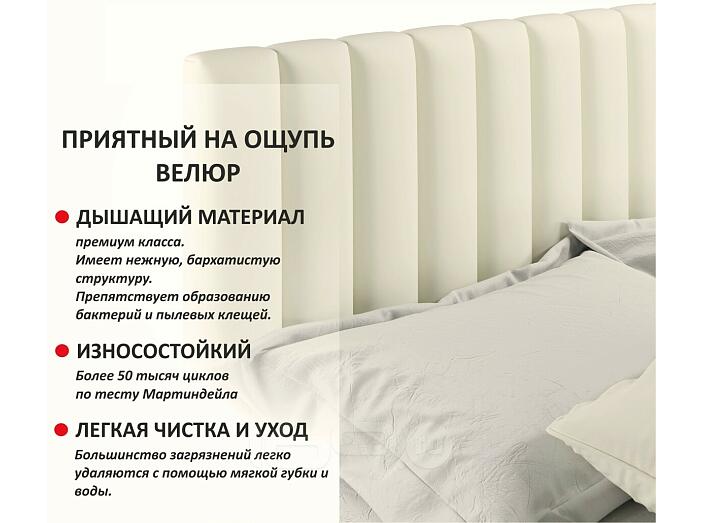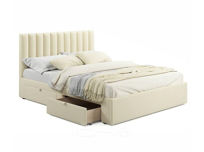 Кровать Olivia с матрасом велюр бежевый без П/М 1600x2000, ортопедическое основание, изголовье мягкое