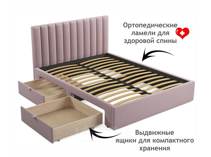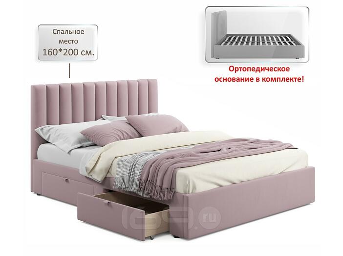 Кровать Olivia с матрасом велюр лиловый без П/М 1600x2000, ортопедическое основание, изголовье мягкое
