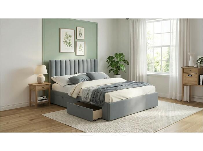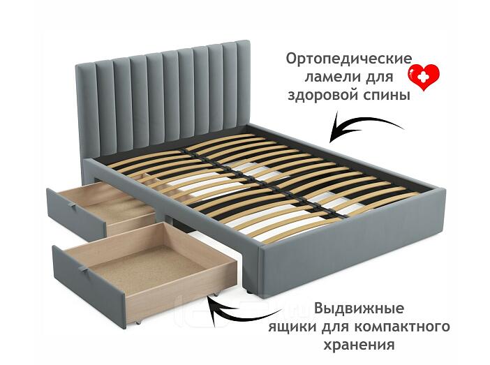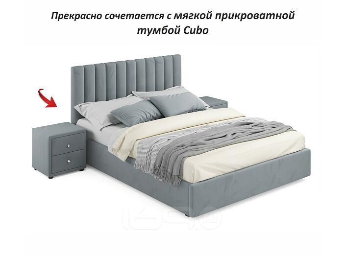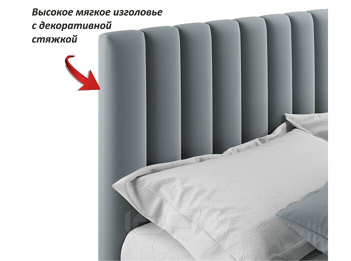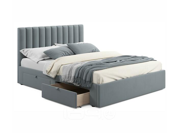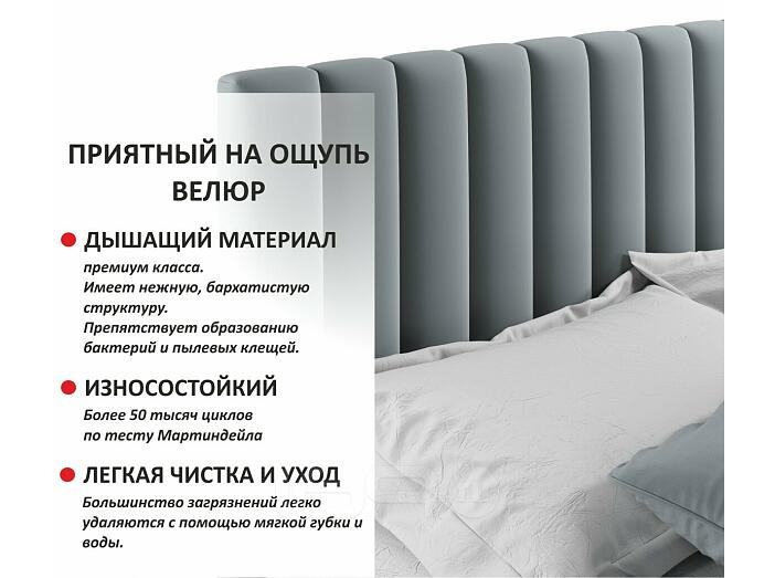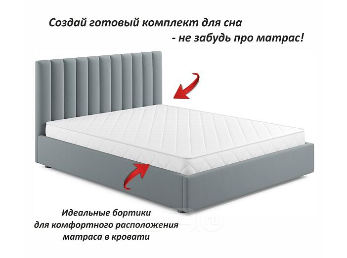 Кровать Olivia с матрасом велюр серый без П/М 1600x2000, ортопедическое основание, изголовье мягкое