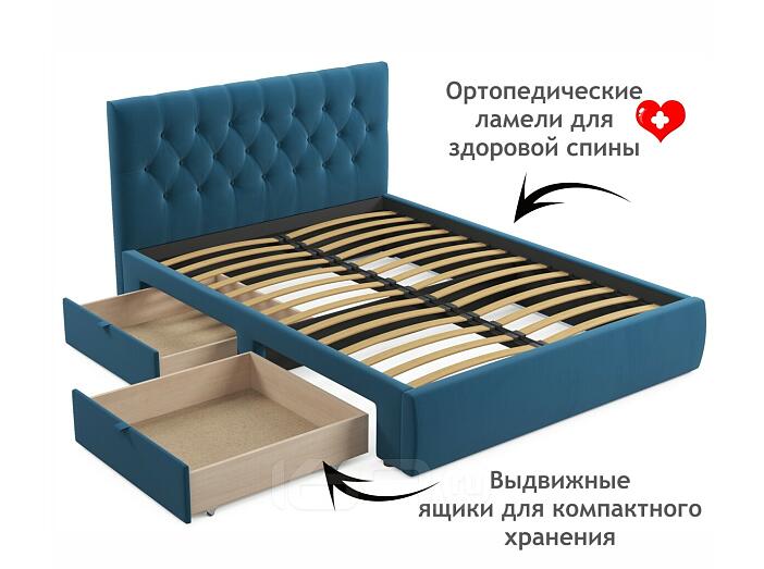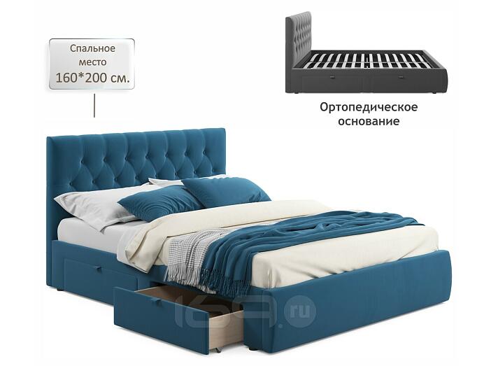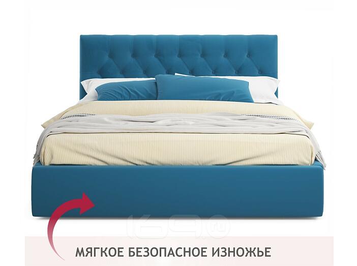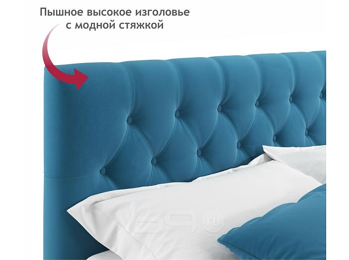 Кровать Verona с матрасом велюр синий без П/М 1600x2000, ортопедическое основание, изголовье мягкое