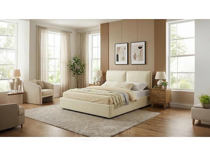Кровать Vita с матрасом велюр бежевый без П/М 1600x2000, изголовье мягкое