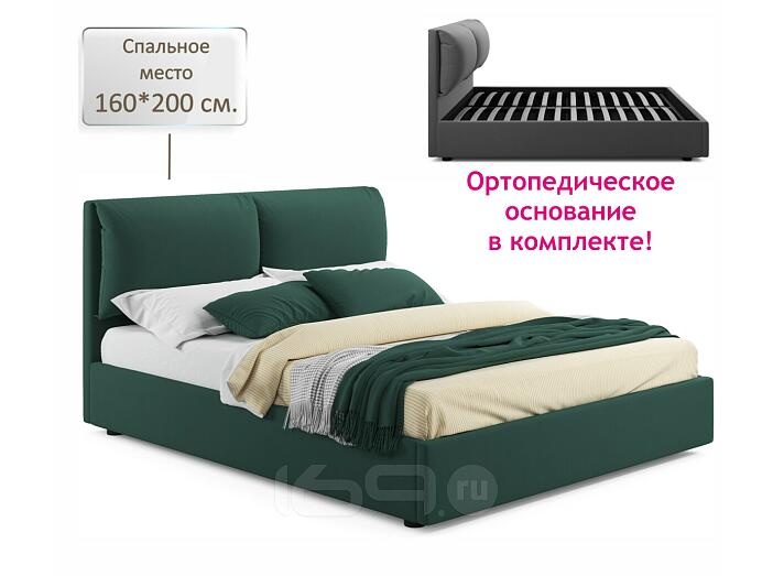 Кровать Vita с матрасом велюр изумруд без П/М 1600x2000, изголовье мягкое