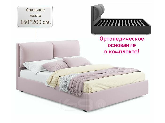Кровать Vita с матрасом велюр лиловый без П/М 1600x2000, изголовье мягкое