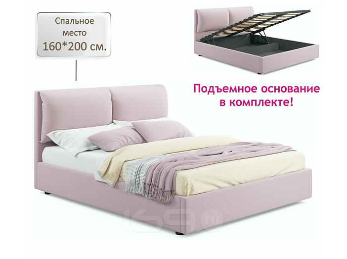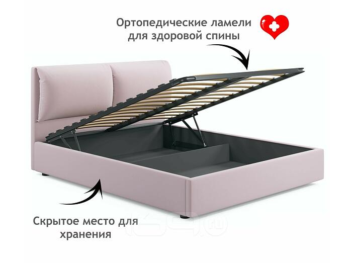 Кровать Vita с матрасом велюр лиловый С П/М 1600x2000, ортопедическое основание, изголовье мягкое